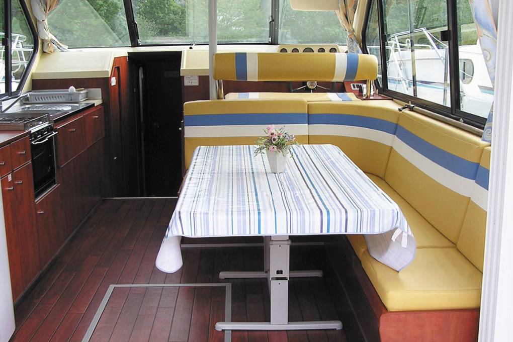 Met zijn grote woonkamer, 360° panoramisch uitzicht, semi-uitgeruste kombuis en gelijkvloers achterterras heeft deze boot alle benodigdheden voor een thuis weg van huis.