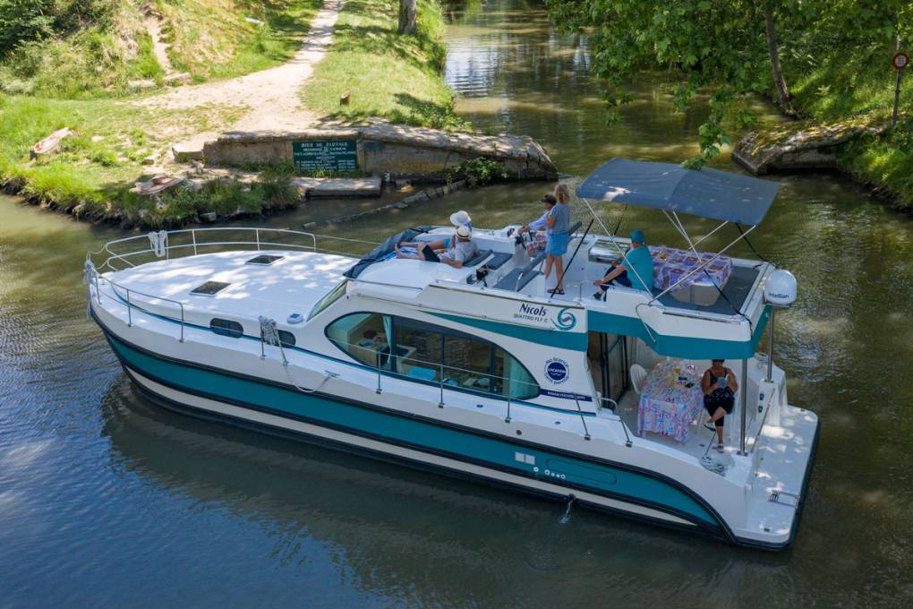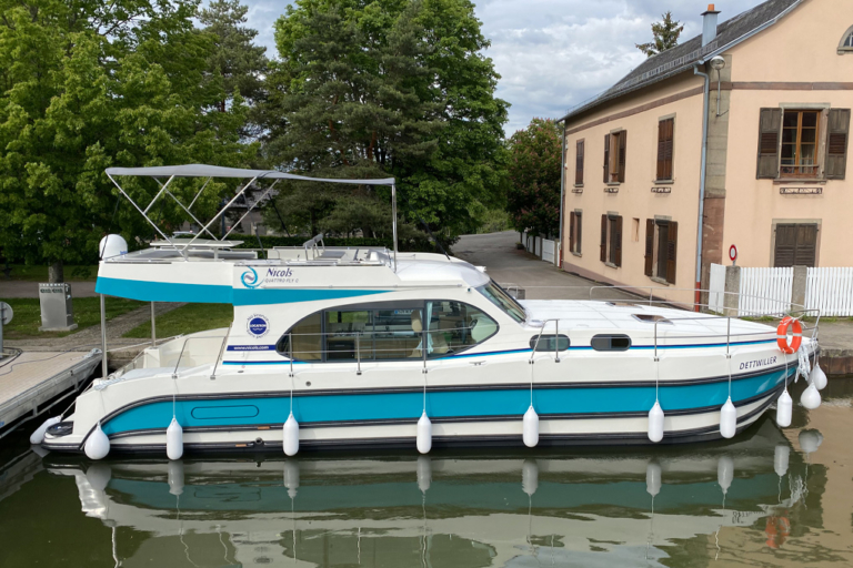 Je zult zien dat Nicols boten eenvoudig en gemakkelijk te besturen zijn: een sleutel in het contact, een versnelling vooruit en achteruit (om af te remmen en te stoppen), een beetje geduld en een zachte aanraking om door de eerste sluizen te komen, en je bent al een ervaren kapitein! Neem de tijd... en begin aan een ontspannende riviervakantie op het ritme van het water!