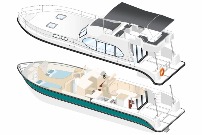 NIEUW: De Quattro Fly C is een ideale rivierboot voor 2 stellen of 1 stel met 2 kinderen. Hij heeft 2 slaapkamers met eigen badkamer en een grote woonkamer. Hij is ook gemakkelijk te besturen dankzij de twee boegschroeven (achtersteven en boeg).