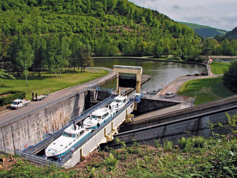 Vers l’Ouest, larguez les amarres en direction de Lutzelbourg et son célèbre « ascenseur à bateaux » -ouvrage unique en Europe-, puis empruntez les insolites tunnels de Niderviller.